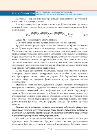 Page 110 - ИНВЕСТИЦИОН ЖОЗИБАДОРЛИКНИНГ НАЗАРИЙ, МЕТОДОЛОГИК ВА АМАЛИЙ ТАЛҚИНИ
