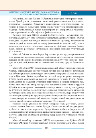 Page 113 - ИНВЕСТИЦИОН ЖОЗИБАДОРЛИКНИНГ НАЗАРИЙ, МЕТОДОЛОГИК ВА АМАЛИЙ ТАЛҚИНИ