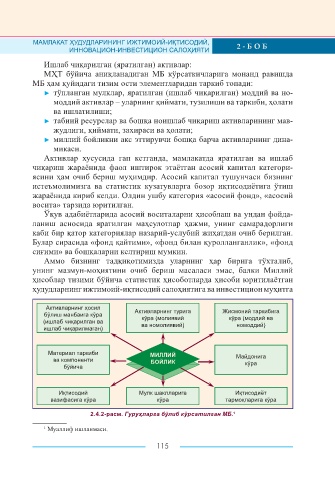 Page 115 - ИНВЕСТИЦИОН ЖОЗИБАДОРЛИКНИНГ НАЗАРИЙ, МЕТОДОЛОГИК ВА АМАЛИЙ ТАЛҚИНИ