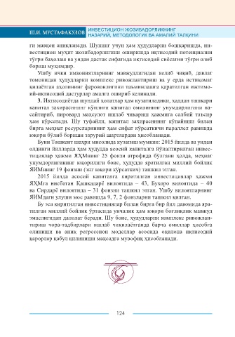 Page 124 - ИНВЕСТИЦИОН ЖОЗИБАДОРЛИКНИНГ НАЗАРИЙ, МЕТОДОЛОГИК ВА АМАЛИЙ ТАЛҚИНИ