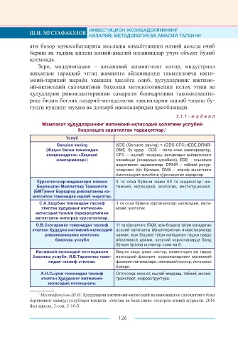 Page 126 - ИНВЕСТИЦИОН ЖОЗИБАДОРЛИКНИНГ НАЗАРИЙ, МЕТОДОЛОГИК ВА АМАЛИЙ ТАЛҚИНИ