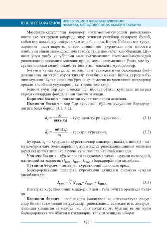 Page 128 - ИНВЕСТИЦИОН ЖОЗИБАДОРЛИКНИНГ НАЗАРИЙ, МЕТОДОЛОГИК ВА АМАЛИЙ ТАЛҚИНИ