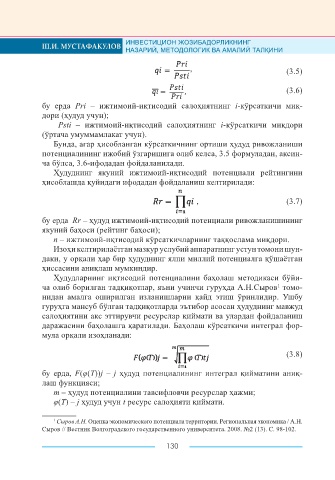 Page 130 - ИНВЕСТИЦИОН ЖОЗИБАДОРЛИКНИНГ НАЗАРИЙ, МЕТОДОЛОГИК ВА АМАЛИЙ ТАЛҚИНИ
