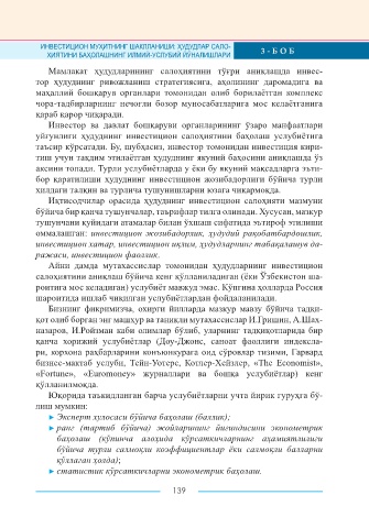 Page 139 - ИНВЕСТИЦИОН ЖОЗИБАДОРЛИКНИНГ НАЗАРИЙ, МЕТОДОЛОГИК ВА АМАЛИЙ ТАЛҚИНИ