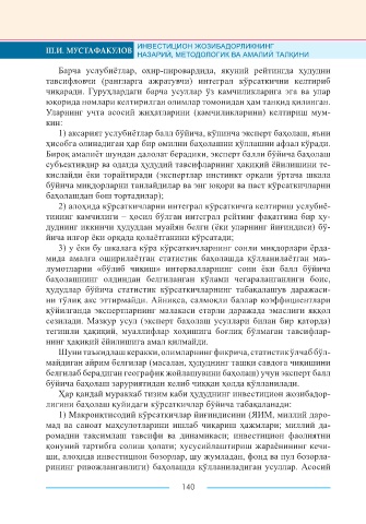 Page 140 - ИНВЕСТИЦИОН ЖОЗИБАДОРЛИКНИНГ НАЗАРИЙ, МЕТОДОЛОГИК ВА АМАЛИЙ ТАЛҚИНИ