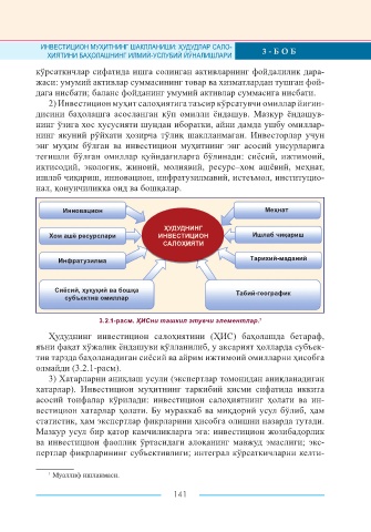 Page 141 - ИНВЕСТИЦИОН ЖОЗИБАДОРЛИКНИНГ НАЗАРИЙ, МЕТОДОЛОГИК ВА АМАЛИЙ ТАЛҚИНИ