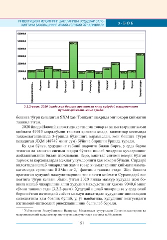 3.2.1-расм. 2020 йилда Ўзбекистон Республикаси ҳудудларида яратилган 2020 йилда навоий вилоятида яратилган товар ва хизматларнинг жами