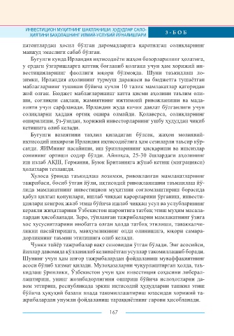 Page 167 - ИНВЕСТИЦИОН ЖОЗИБАДОРЛИКНИНГ НАЗАРИЙ, МЕТОДОЛОГИК ВА АМАЛИЙ ТАЛҚИНИ