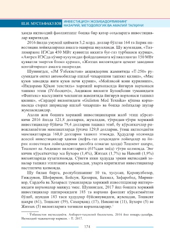 Page 174 - ИНВЕСТИЦИОН ЖОЗИБАДОРЛИКНИНГ НАЗАРИЙ, МЕТОДОЛОГИК ВА АМАЛИЙ ТАЛҚИНИ