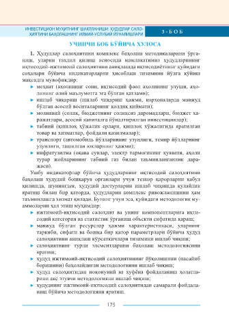 Page 175 - ИНВЕСТИЦИОН ЖОЗИБАДОРЛИКНИНГ НАЗАРИЙ, МЕТОДОЛОГИК ВА АМАЛИЙ ТАЛҚИНИ