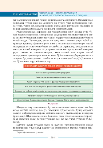 Page 184 - ИНВЕСТИЦИОН ЖОЗИБАДОРЛИКНИНГ НАЗАРИЙ, МЕТОДОЛОГИК ВА АМАЛИЙ ТАЛҚИНИ