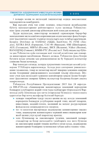 Page 195 - ИНВЕСТИЦИОН ЖОЗИБАДОРЛИКНИНГ НАЗАРИЙ, МЕТОДОЛОГИК ВА АМАЛИЙ ТАЛҚИНИ