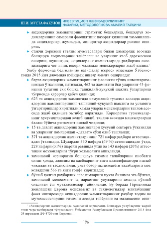 Page 196 - ИНВЕСТИЦИОН ЖОЗИБАДОРЛИКНИНГ НАЗАРИЙ, МЕТОДОЛОГИК ВА АМАЛИЙ ТАЛҚИНИ