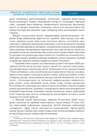 Page 215 - ИНВЕСТИЦИОН ЖОЗИБАДОРЛИКНИНГ НАЗАРИЙ, МЕТОДОЛОГИК ВА АМАЛИЙ ТАЛҚИНИ