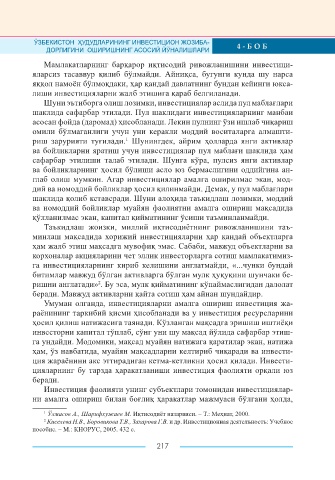 Page 217 - ИНВЕСТИЦИОН ЖОЗИБАДОРЛИКНИНГ НАЗАРИЙ, МЕТОДОЛОГИК ВА АМАЛИЙ ТАЛҚИНИ