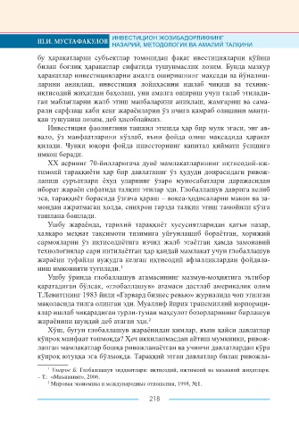 Page 218 - ИНВЕСТИЦИОН ЖОЗИБАДОРЛИКНИНГ НАЗАРИЙ, МЕТОДОЛОГИК ВА АМАЛИЙ ТАЛҚИНИ