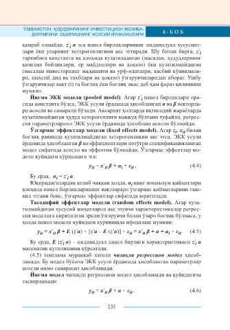 ган панел бирликлари сони, Т кузатиладиган вақтни кўрсатади. Тўплам- y = x¢ β + α + ε . (4.4)