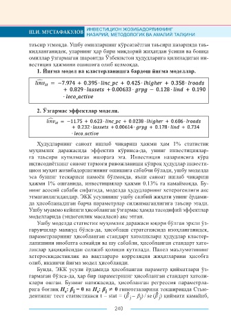 Page 240 - ИНВЕСТИЦИОН ЖОЗИБАДОРЛИКНИНГ НАЗАРИЙ, МЕТОДОЛОГИК ВА АМАЛИЙ ТАЛҚИНИ