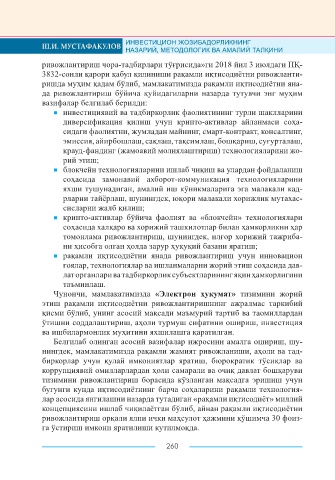 Page 260 - ИНВЕСТИЦИОН ЖОЗИБАДОРЛИКНИНГ НАЗАРИЙ, МЕТОДОЛОГИК ВА АМАЛИЙ ТАЛҚИНИ
