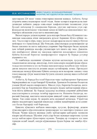 Page 276 - ИНВЕСТИЦИОН ЖОЗИБАДОРЛИКНИНГ НАЗАРИЙ, МЕТОДОЛОГИК ВА АМАЛИЙ ТАЛҚИНИ