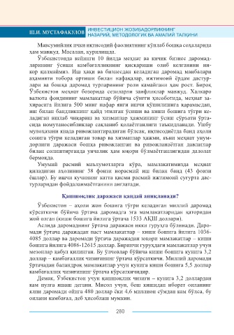 Page 280 - ИНВЕСТИЦИОН ЖОЗИБАДОРЛИКНИНГ НАЗАРИЙ, МЕТОДОЛОГИК ВА АМАЛИЙ ТАЛҚИНИ