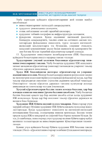 Page 292 - ИНВЕСТИЦИОН ЖОЗИБАДОРЛИКНИНГ НАЗАРИЙ, МЕТОДОЛОГИК ВА АМАЛИЙ ТАЛҚИНИ