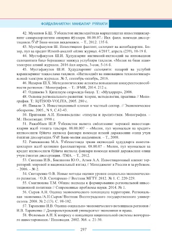 29. Зенченко С. в., шемёткина М. а. «инвестиционный потенциал регио- 45. Мустафакулов ш.и. Ҳудудларнинг салоҳияти: назарий ва услубий