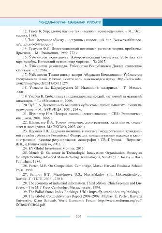 Page 301 - ИНВЕСТИЦИОН ЖОЗИБАДОРЛИКНИНГ НАЗАРИЙ, МЕТОДОЛОГИК ВА АМАЛИЙ ТАЛҚИНИ