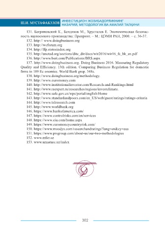 Page 302 - ИНВЕСТИЦИОН ЖОЗИБАДОРЛИКНИНГ НАЗАРИЙ, МЕТОДОЛОГИК ВА АМАЛИЙ ТАЛҚИНИ