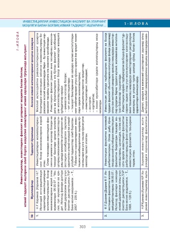 Page 303 - ИНВЕСТИЦИОН ЖОЗИБАДОРЛИКНИНГ НАЗАРИЙ, МЕТОДОЛОГИК ВА АМАЛИЙ ТАЛҚИНИ