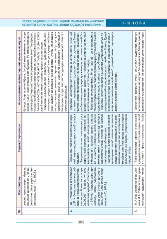 Page 305 - ИНВЕСТИЦИОН ЖОЗИБАДОРЛИКНИНГ НАЗАРИЙ, МЕТОДОЛОГИК ВА АМАЛИЙ ТАЛҚИНИ