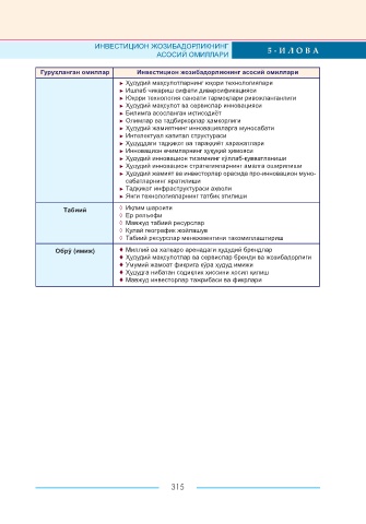 Page 315 - ИНВЕСТИЦИОН ЖОЗИБАДОРЛИКНИНГ НАЗАРИЙ, МЕТОДОЛОГИК ВА АМАЛИЙ ТАЛҚИНИ