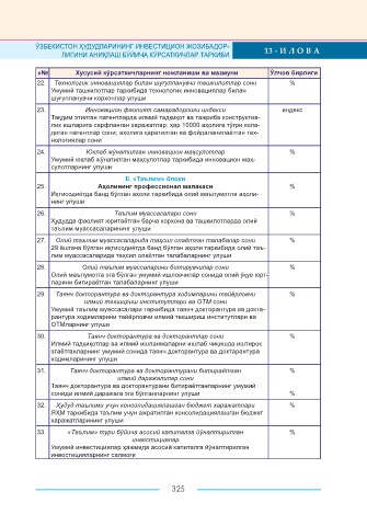 Page 325 - ИНВЕСТИЦИОН ЖОЗИБАДОРЛИКНИНГ НАЗАРИЙ, МЕТОДОЛОГИК ВА АМАЛИЙ ТАЛҚИНИ