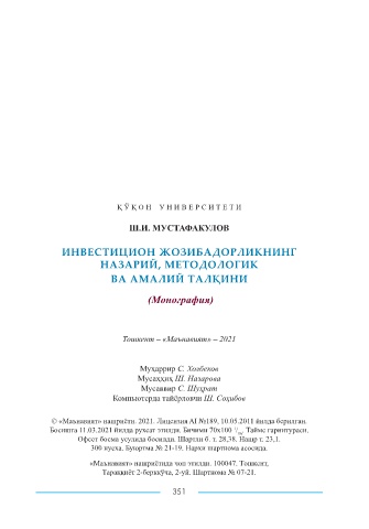 Page 351 - ИНВЕСТИЦИОН ЖОЗИБАДОРЛИКНИНГ НАЗАРИЙ, МЕТОДОЛОГИК ВА АМАЛИЙ ТАЛҚИНИ