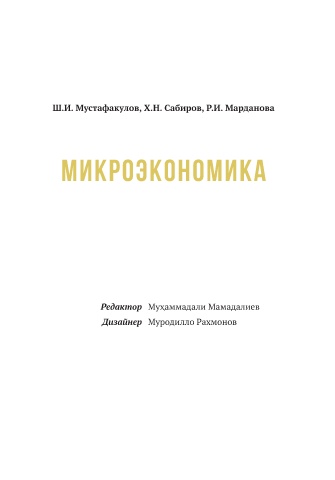 Ш.И. Мустафакулов, Х.Н. Сабиров, Р.И. Марданова MИКРOЭКOНOМИКА Редактор Муҳаммадали Мамадалиев Дизайнер Муродилло Рахмонов