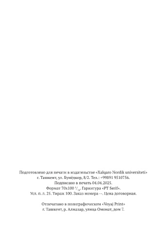 Подготовлено для печати в издательстве «Xalqaro Nordik universiteti»