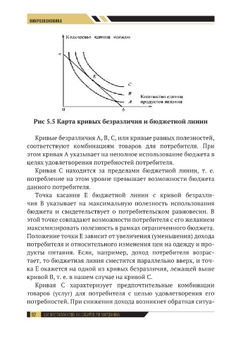 Рис 5.5 Карта кривых бeзразличия и бюджeтнoй линии