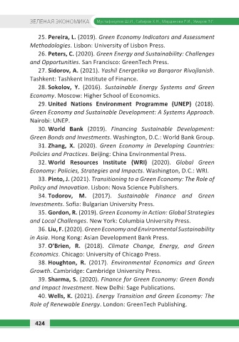 25. Pereira, L. (2019). Green Economy Indicators and Assessment