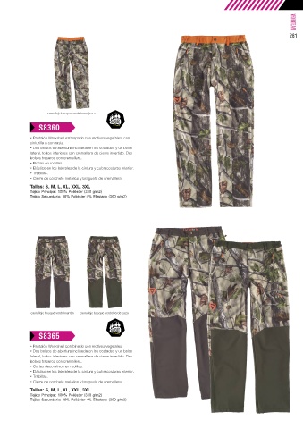 superior cubriendo la cremallera. • Pantalón Workshell combinado con motivos vegetales.