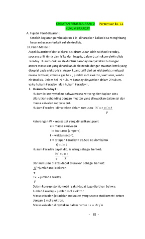elektrolisis. Dalam hal ini hukum Faraday dinyatakan dalam 2 hukum,
