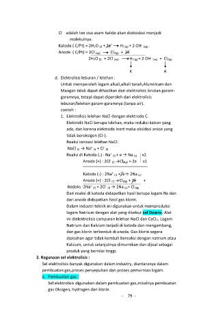 dan gas klorin terbentuk di anoda. Gas klorin segera
