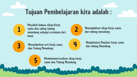 1 sama dan saling tolong 2 Menunjukkan sikap kerja sama