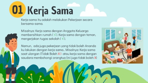 membersihkan rumah ( √ ). Kerja sama dengan teman,