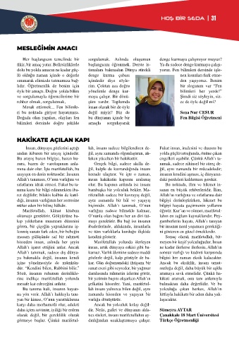 nıma kuru bir bilgi edinmekten iba- bambaşka bir yolculuk bekler. Ma- sanın en büyük rehberleridir. İlim,