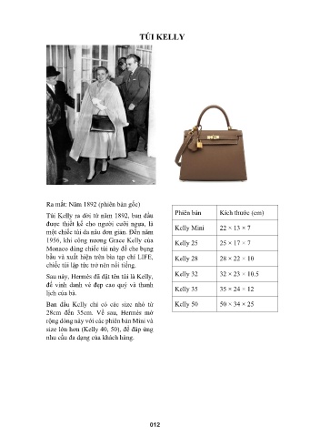 Túi Kelly ra đời từ năm 1892, ban đầu Phiên bản Kích thước (cm)