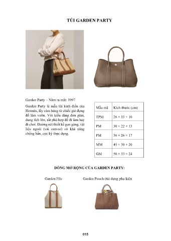 Garden Party là mẫu túi kinh điển của Mẫu mã Kích thước (cm)
