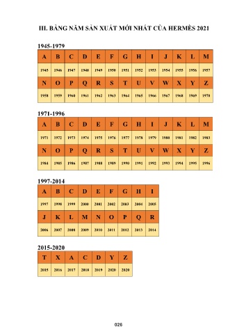 III. BẢNG NĂM SẢN XUẤT MỚI NHẤT CỦA HERMÈS 2021