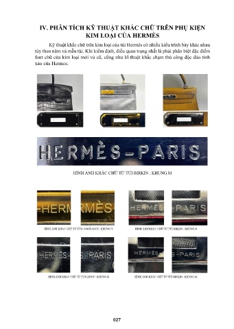 Kỹ thuật khắc chữ trên kim loại của túi Hermès có nhiều kiểu trình bày khác nhau