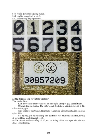 Trên tem laser của Chanel, kích thước và cách sắp xếp hạt kim tuyến hoàn toàn