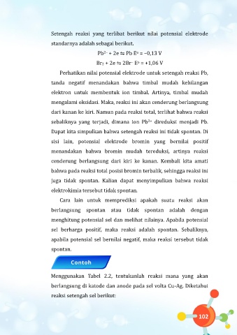 Perhatikan nilai potensial elektrode untuk setengah reaksi Pb,